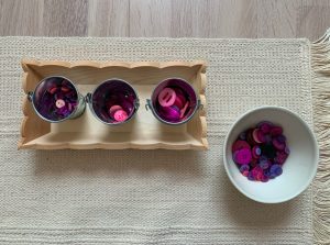 🔎En théorie… Le tri de graines (de boutons, de perles…) consiste à les trier selon leur couleur ou leur taille afin d’établir un classement. Ce genre d’activités aide l’enfant à développer sa concentration, son esprit d’analyse et son sens de l’observation.